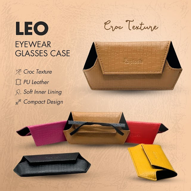 The Leo Eyewear Glasses Case with Croc Texture in PU Leather is a stylish and practical accessory designed to protect your eyewear while adding a touch of luxury to your ensemble. Here's a description and some features of this elegant case: