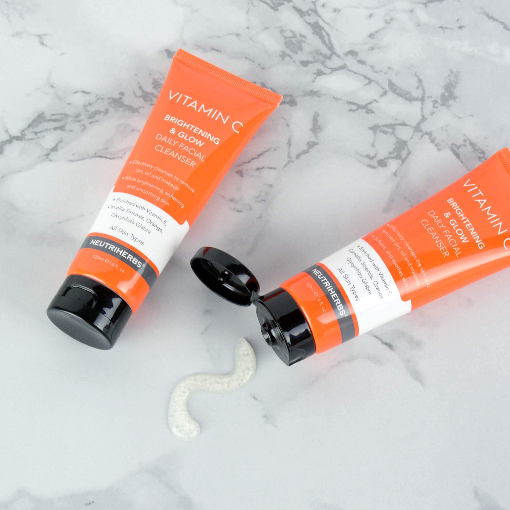 Neutriherbs vitamin c face wash combining the natural antioxidant Vitamin C and extracts such as Green Tee, Chamomile flower, and Aloe, gently clears away facial dirt and makeup residue. In addition to dissolving excess oil and dirt, vitamin c face wash helps maintain the skin’s natural balance. It leaves the skin feeling hydrated and refreshed.